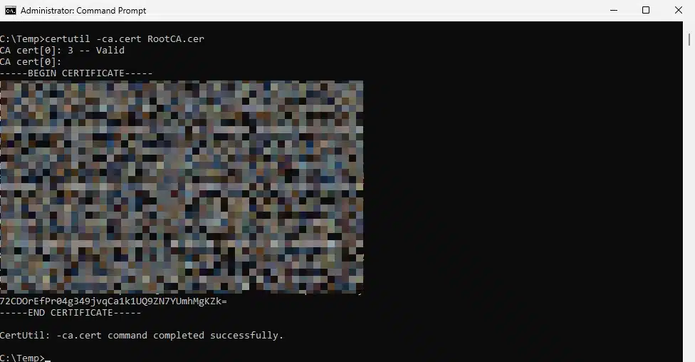 certutil -config "HW-CA01.core.hawkweave.com\CORE-HAWKWEAVE-CA01-CA" -ca.cert C:\Temp\RootCA.cer