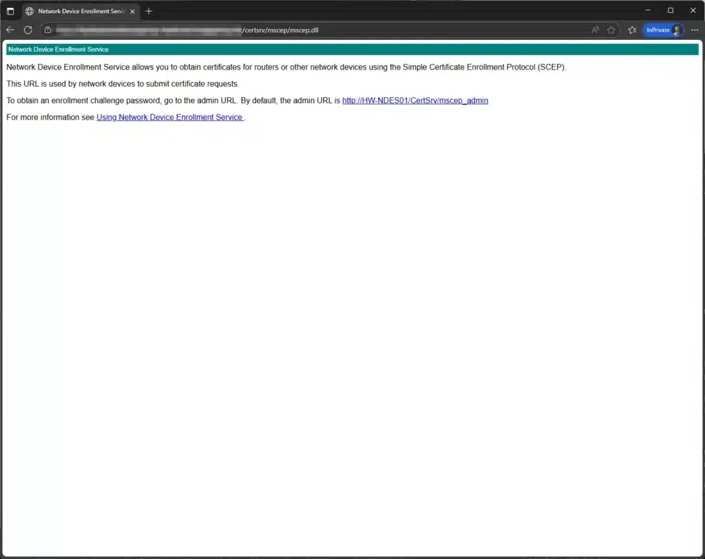 Invoke-WebRequest -Uri "http://localhost/certsrv/mscep/mscep.dll" -UseBasicParsing