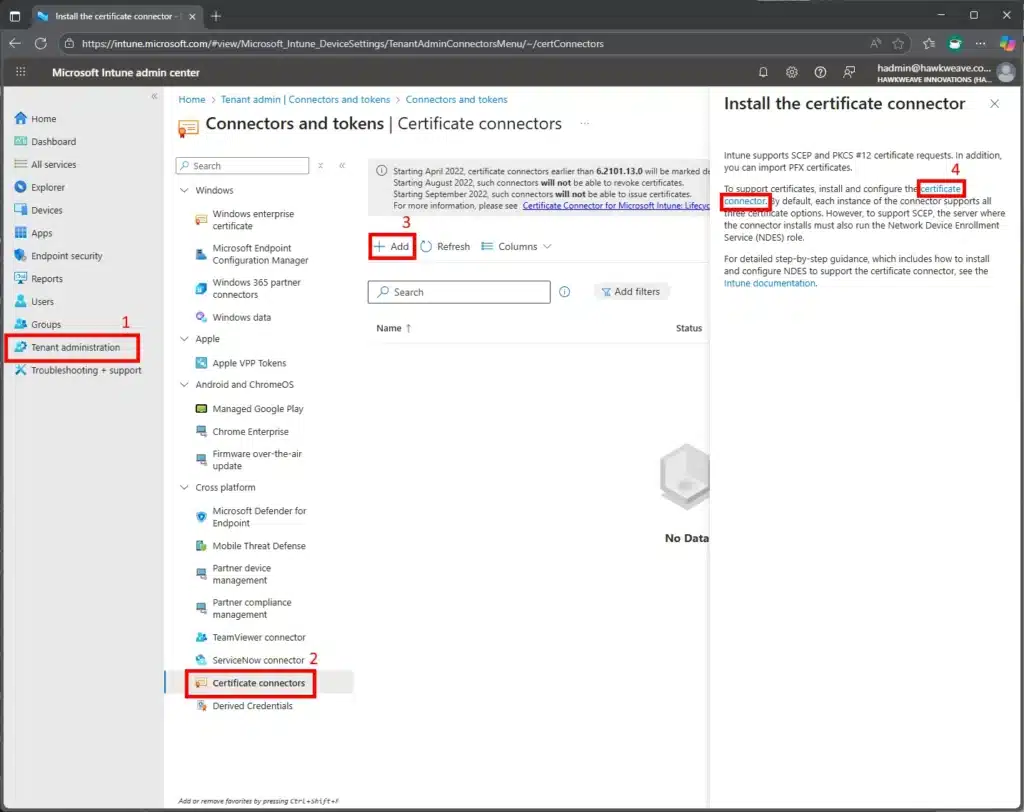 - Intune Certificate Connector – Bridges Intune with the NDES server