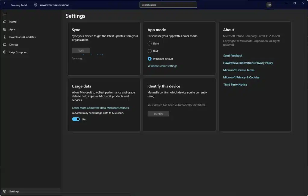 Or, bring up Company Portal and trigger a Sync from Settings: